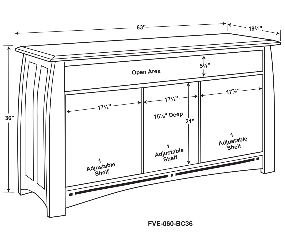 Dimensions: 63″W x 19¾”D x 36″H